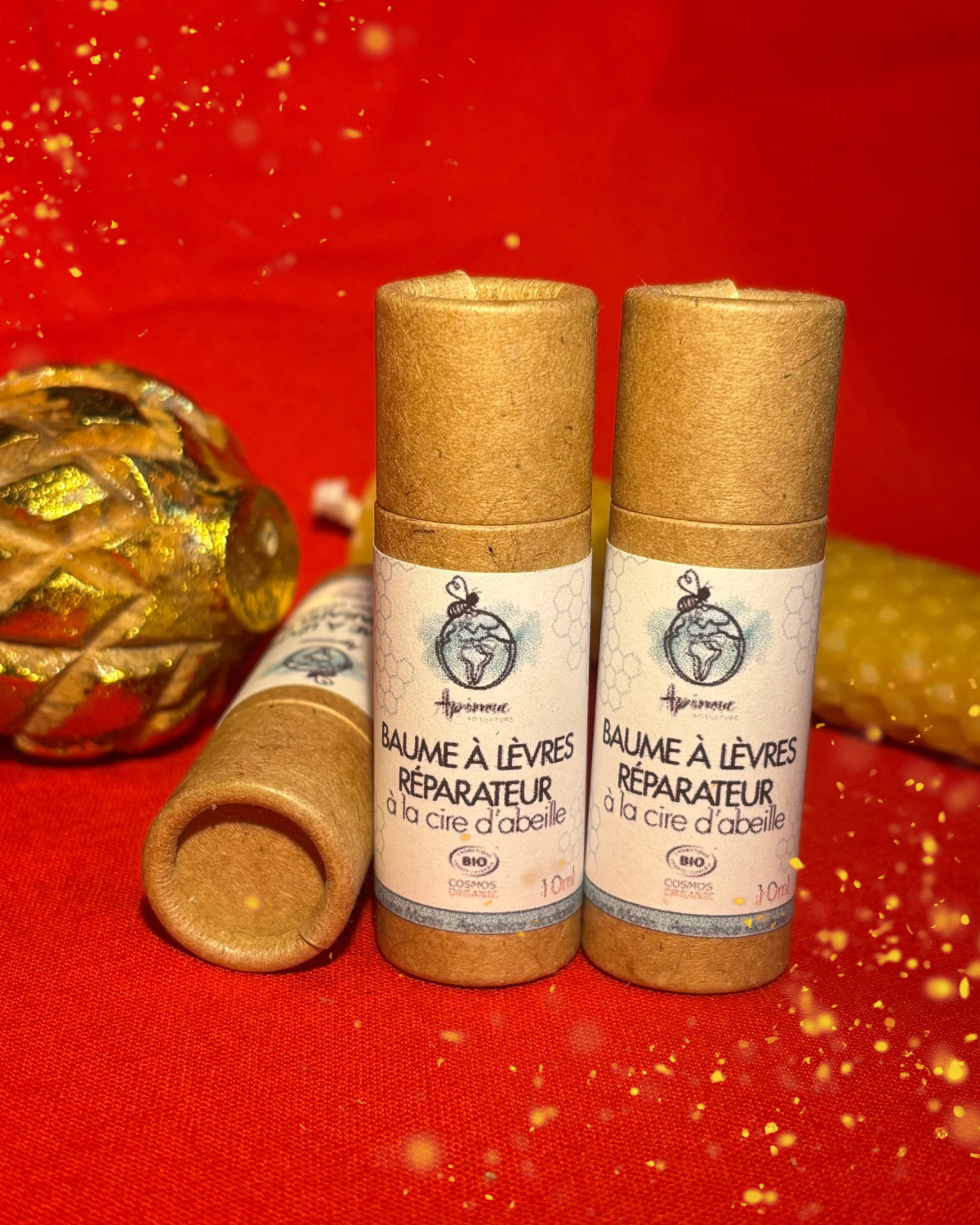 Baume à lèvres réparateur bio à la cire d’abeille de mes ruches fabriqué en France.